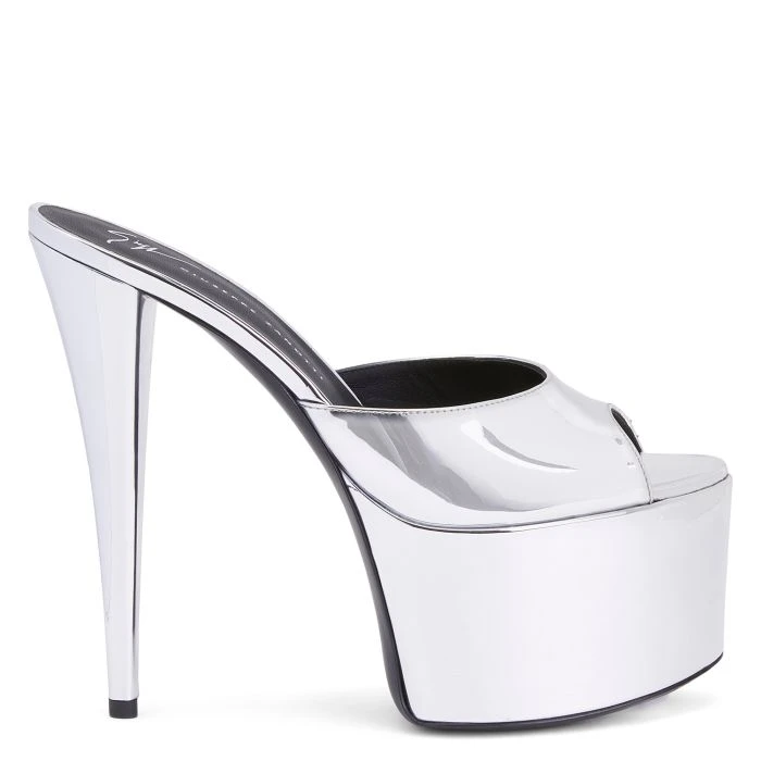 - 60 mm platform covered in silver mirror-effect synthetic fabric